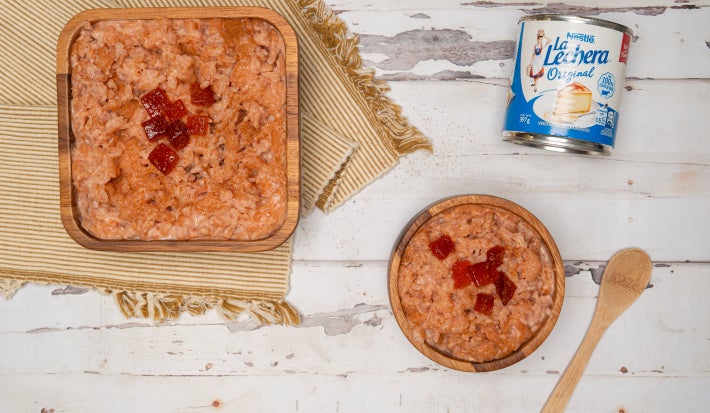Un postre tradicional con un toque tropical. Este arroz con leche y corazón de guayaba combina la cremosidad irresistible de la leche condensada La Lechera® con la dulzura natural y ligeramente ácida de la guayaba, creando un contraste perfecto en cada cucharada. Ideal para compartir en familia o sorprender con un clásico reinventado.