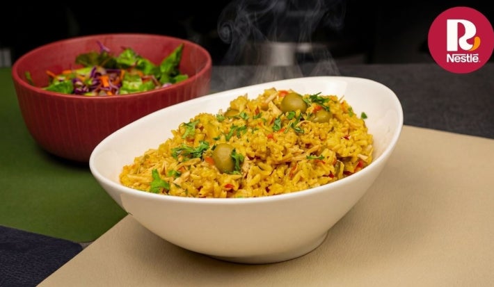 - 5.Añadir Maggi® De La Huerta Sazonador de Curry. Revolver y dejar cocinar hasta que el pollo esté cocido.