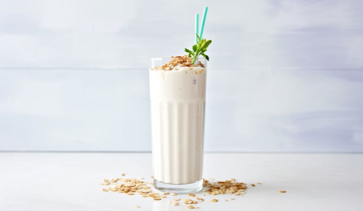 - 1.En una jarra, agrega la avena, el agua y la Leche Evaporada Ideal® 50% + proteína.