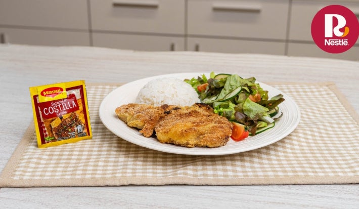 Prepara unas chuletas empanizadas irresistibles, crujientes por fuera y jugosas por dentro, potenciadas con el sabor único del Sazonador Maggi Costilla Criolla. Una receta fácil, rápida y llena de ese toque casero que encanta a toda la familia.