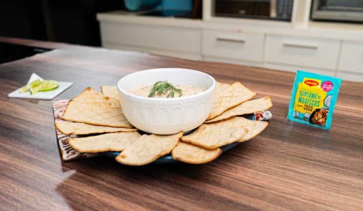 - 1.Combina la mayonesa con el Maggi® Consomé de Mariscos sabor a coco, hasta obtener una mezcla homogénea.