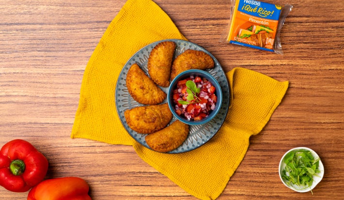 - 5 rebanadas de Queso Nestlé® ¡Qué Rico! Cheddar con sabor Pimentón