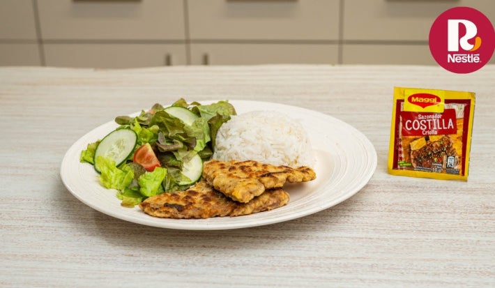 Prepara una milanesa de res jugosa por dentro y crujiente por fuera con un empanizado casero lleno de sabor. El Sazonador Maggi® Costilla Criolla realza la carne con un toque tradicional y sabroso que hace esta receta perfecta para el almuerzo o la cena familiar.