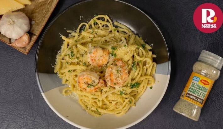 Una pasta cremosa y llena de sabor, preparada con camarones jugosos, ajíes picantes frescos y el toque aromático del Sazonador Completo con Pimienta Negra Maggi®. La mezcla perfecta entre picante y frescura, coronada con perejil y parmesano para un final irresistible.