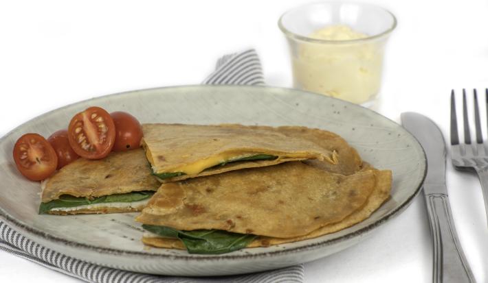 - 1.En un sartén, colocar una tortilla, el jamón, la espinaca, y el Queso Lite Line Nestlé®.